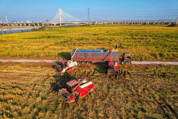 金秋十月,正是豐收好時(shí)節(jié)。在合肥高新區(qū)引江濟(jì)淮蜀山樞紐南側(cè)的廣闊田野里,一臺(tái)臺(tái)收割機(jī)開(kāi)足馬力,在金色的稻浪中歡快地穿梭,將沉甸甸的稻穗“吞”進(jìn)肚里,身后留下一行行整齊的稻茬。這幅火熱的秋收?qǐng)D景,為國(guó)慶假期增添了最動(dòng)人的色彩。